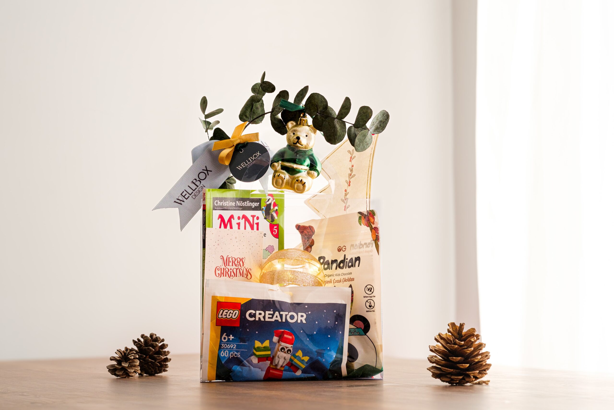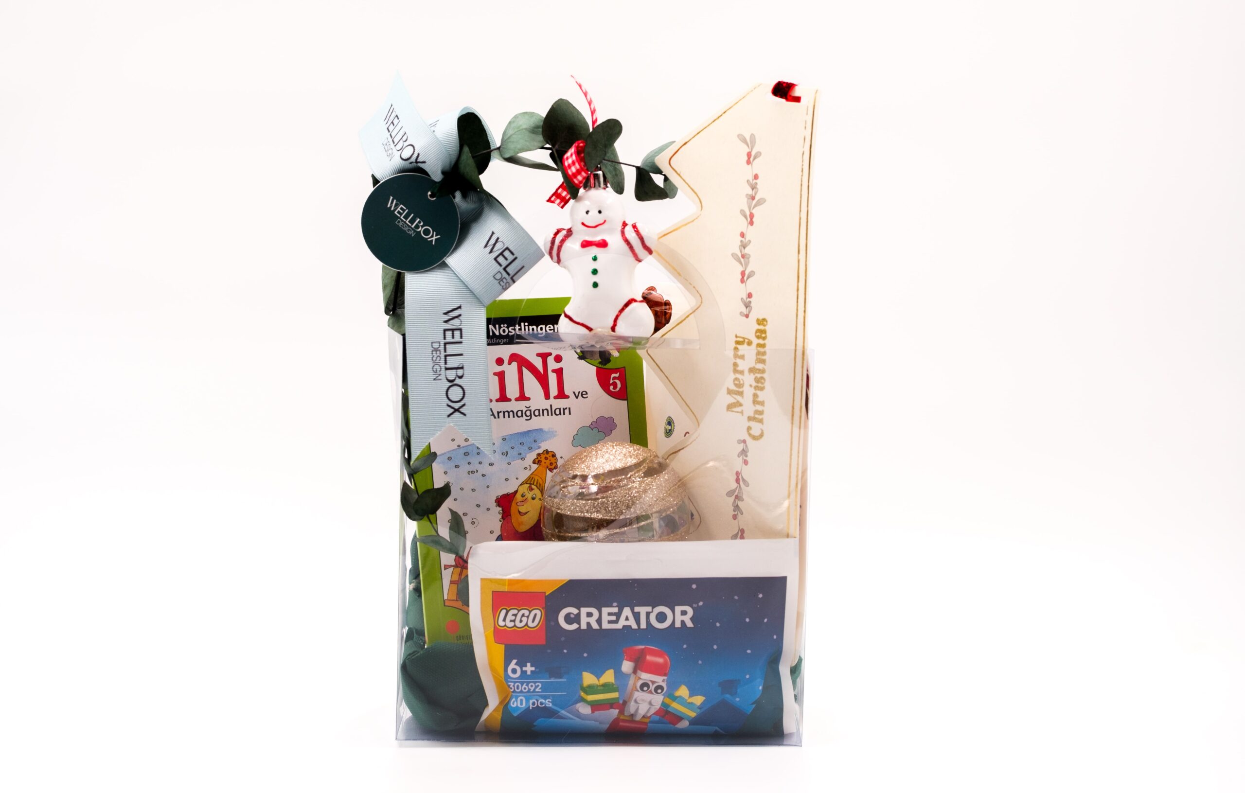 Lego Creator Noel Baba seti, eğlenceli bir kurgu dünyasının kapılarını açarken; yılbaşı temalı çocuk kitabı hayal gücüne yepyeni ışıklar yakacak. OG organik çocuk çikolatası bu özel ana tatlı bir mutluluk katarken, ışıklı yılbaşı süsü miniklere hem eğlence hem de büyülü bir atmosfer sunacak. Zara Home yılbaşı tacı, kutuya şirin bir yılbaşı ruhu eklerken, oyuncak yılbaşı süsü eğlenceli bir hatıra olarak yerini alacak. Simli sevimli yılbaşı kartı ise kutunun içindeki en tatlı dileği taşıyor: